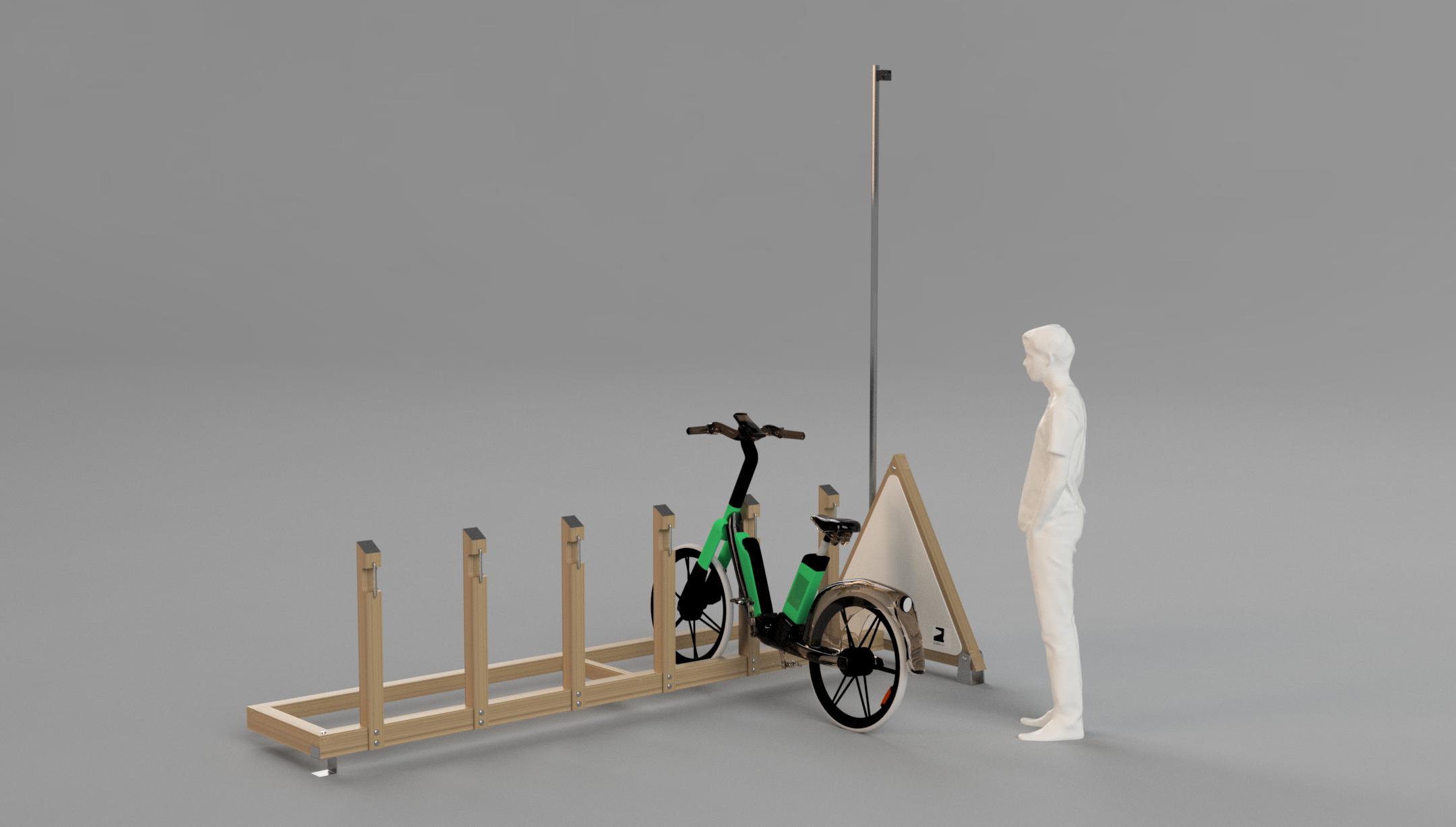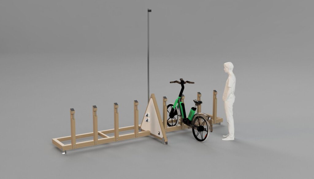 - Dotado de 8 plazas de aparcamiento para bicicletas integradas en un diseño único