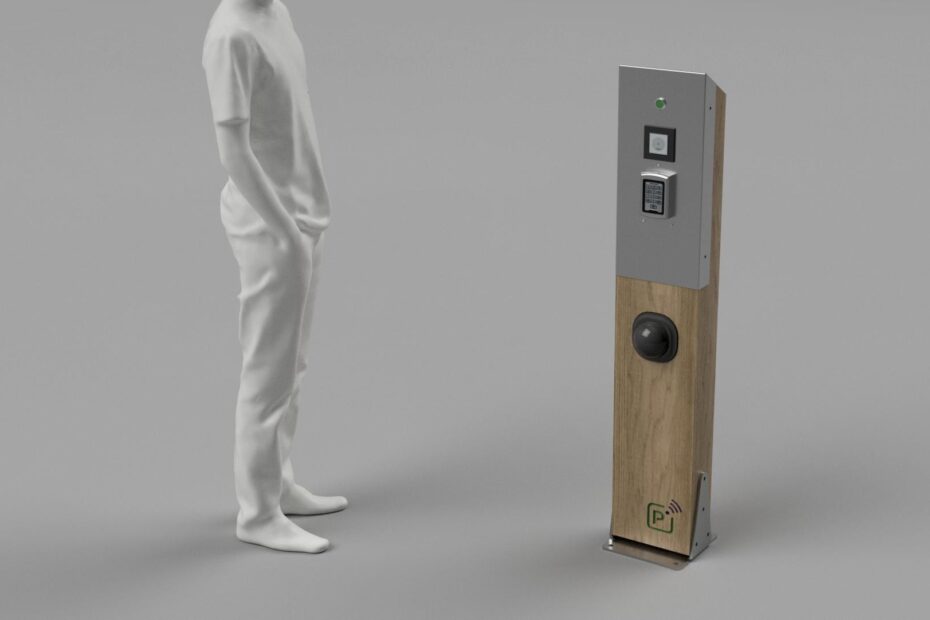 WBOL 02 Poste de madera con cabeza metálica diseñado para alojar un teclado numérico, un lector, un indicador LED y una cámara.alojar un radar de proximidad y un indicador LED. Características técnicas: