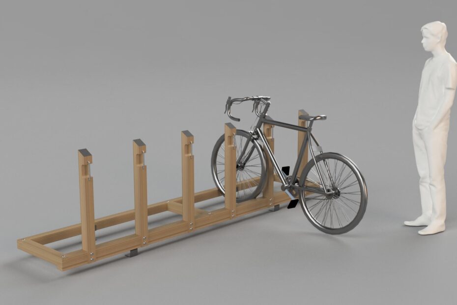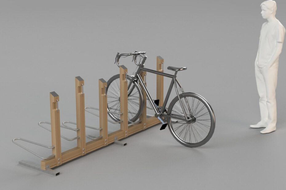WBR 01 Soporte íntegramente ejecutado en madera, permite máxima flexibilidad en cuanto a la colocación de las bicicletas, que pueden apoyarse a un lado o al otro de cada poste Características técnicas: