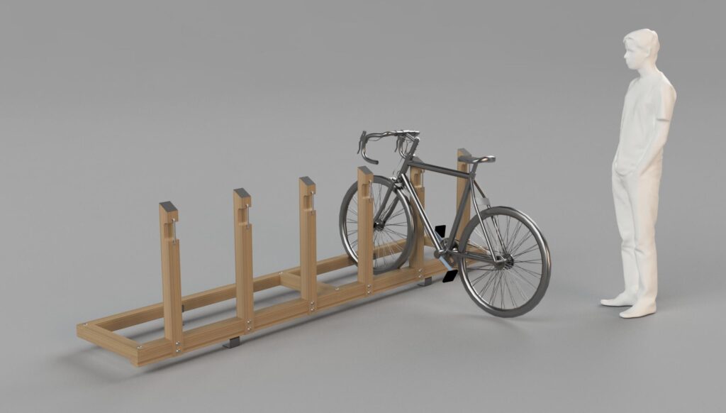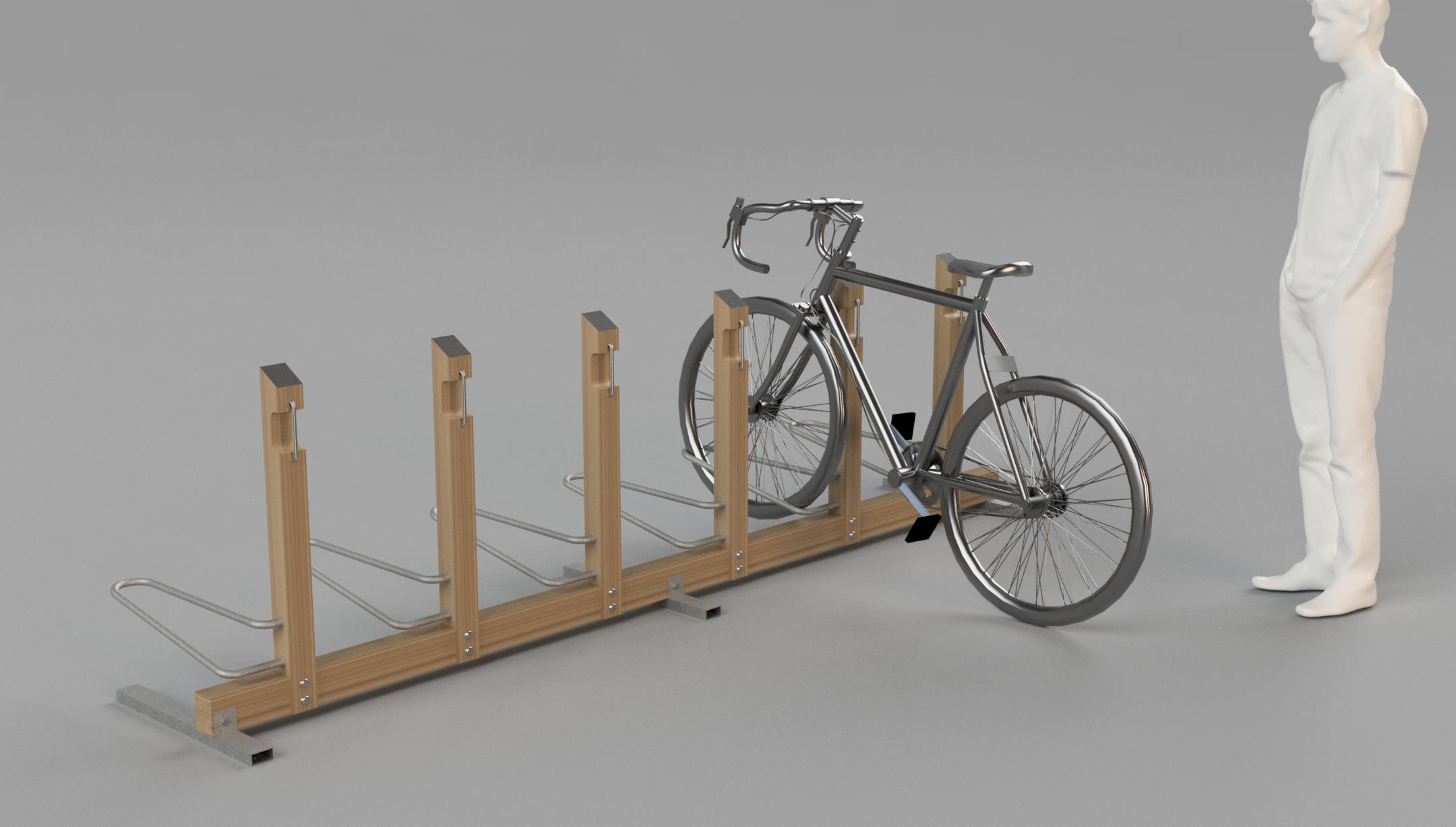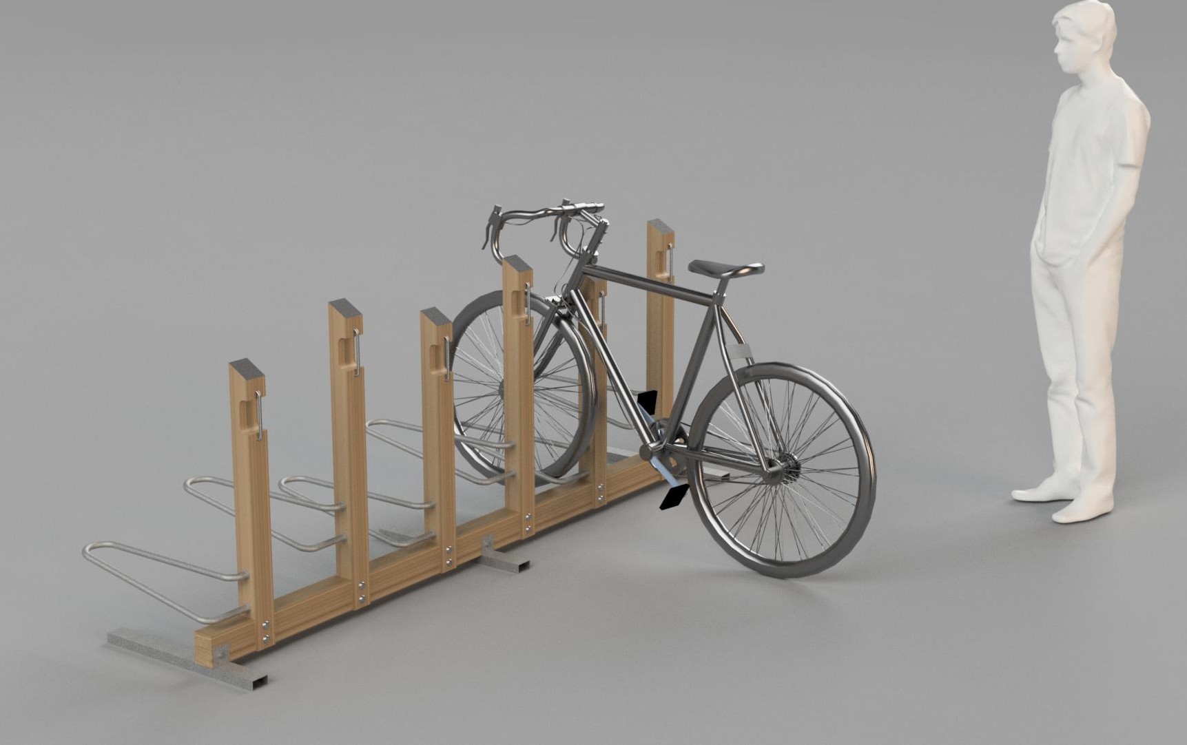 Soporte íntegramente ejecutado en madera, permite máxima flexibilidad en cuanto a la colocación de las bicicletas, que pueden apoyarse a un lado o al otro de cada poste